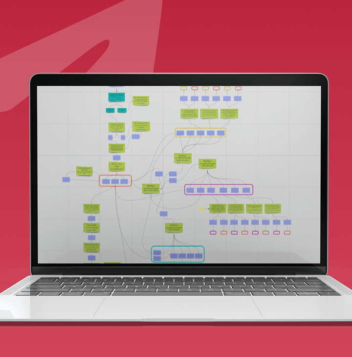 At this stage, we worked out the bot's tasks in detail and wrote dialog scenarios for interaction with employees. The Miro service was used to visualize and account for all the nuances of the process. - Planning the technical implementation