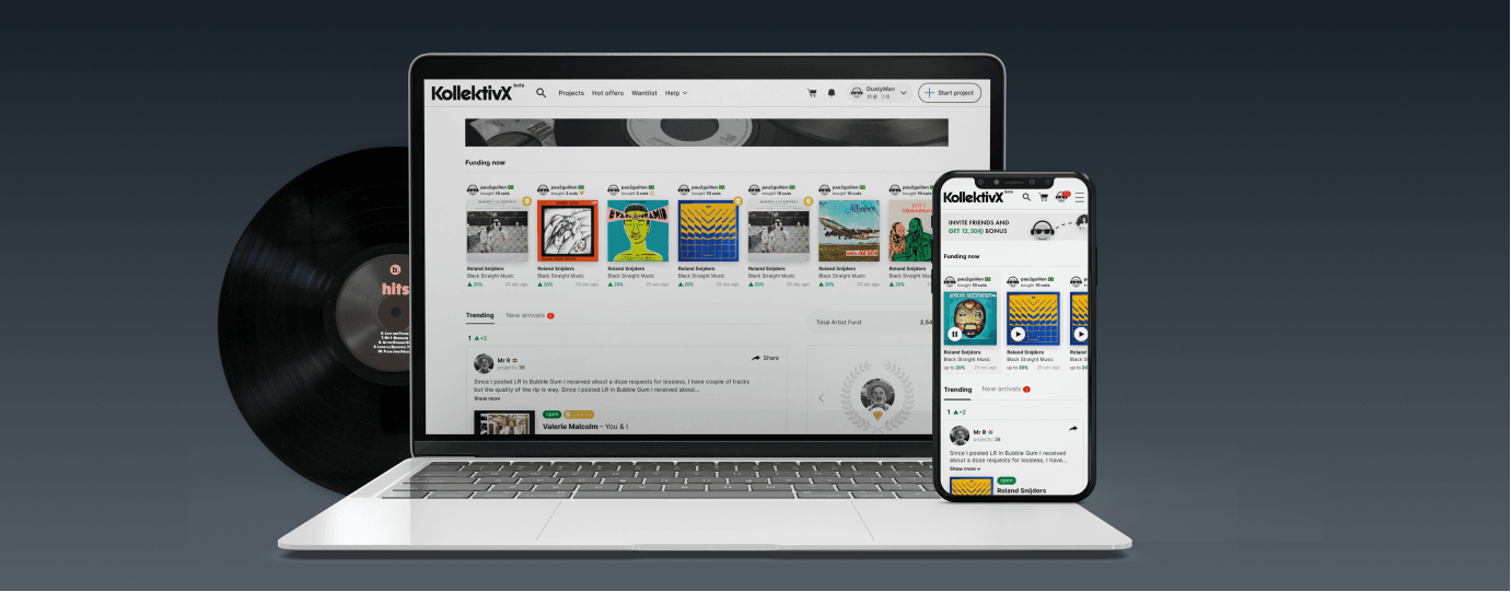 <p>KollektivX is an international startup for collective purchasing of collectible vinyl records.<br /> The cost of a record is divided into 100 parts, and when all 100 parts are purchased, the service specialists physically acquire the record, digitize it on professional equipment, and send digital copies to everyone who participated in the purchase.</p> <p> </p> <p><strong>Project features:</strong></p> <ul> <li>Over 200 million releases (records) in the database</li> <li>The cost of a single record reaches up to 1500 euros</li> <li>Integration with international payment systems PayPal, Stripe</li> <li>User transaction accounting with a system of accounts and entries, similar to banking systems</li> <li>Marketplace for digital copies</li> <li>Royalty system from sales for rights holders and co-owners</li> <li>Notification system for new releases, including via chatbot</li> </ul>