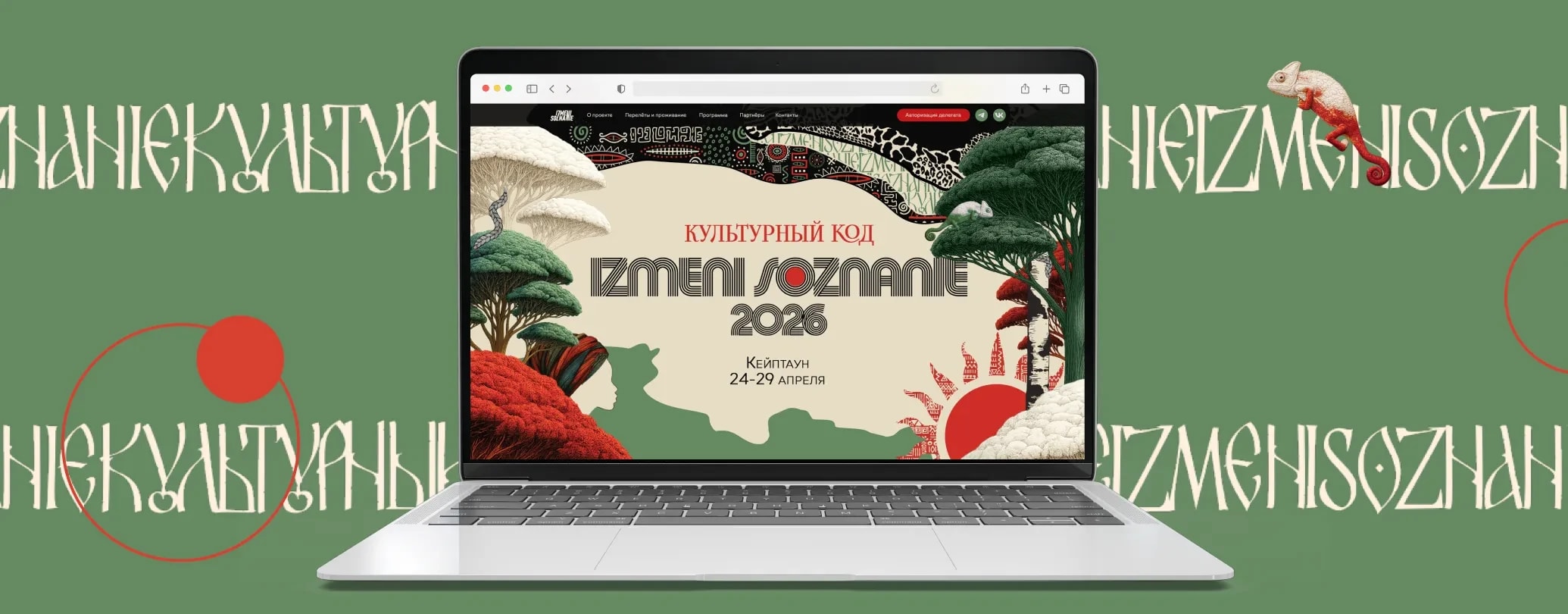 At M-Social, we have been working with the IZMENI SOZNANIE team for a long time. This time we made a website for their 21st conference in Cape Town. The theme is "Cultural code".